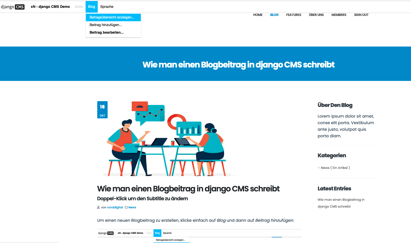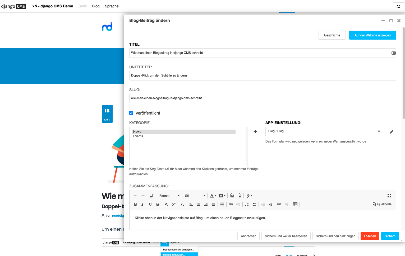 Um einen neuen Blogbeitrag zu erstellen, klicke einfach auf Blog und dann auf Beitrag hinzufügen.